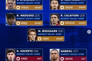 體育資訊11月23日訊 阿森納將在本輪英超焦點(diǎn)戰(zhàn)對(duì)陣熱刺,《轉(zhuǎn)會(huì)市場》統(tǒng)計(jì)顯示隊(duì)內(nèi)最多可能有8人無法出戰(zhàn)。