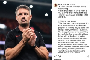 體育資訊11月24日訊 中國香港代表隊今日官方宣布,球隊主教練阿什利·韋斯特伍德下課。